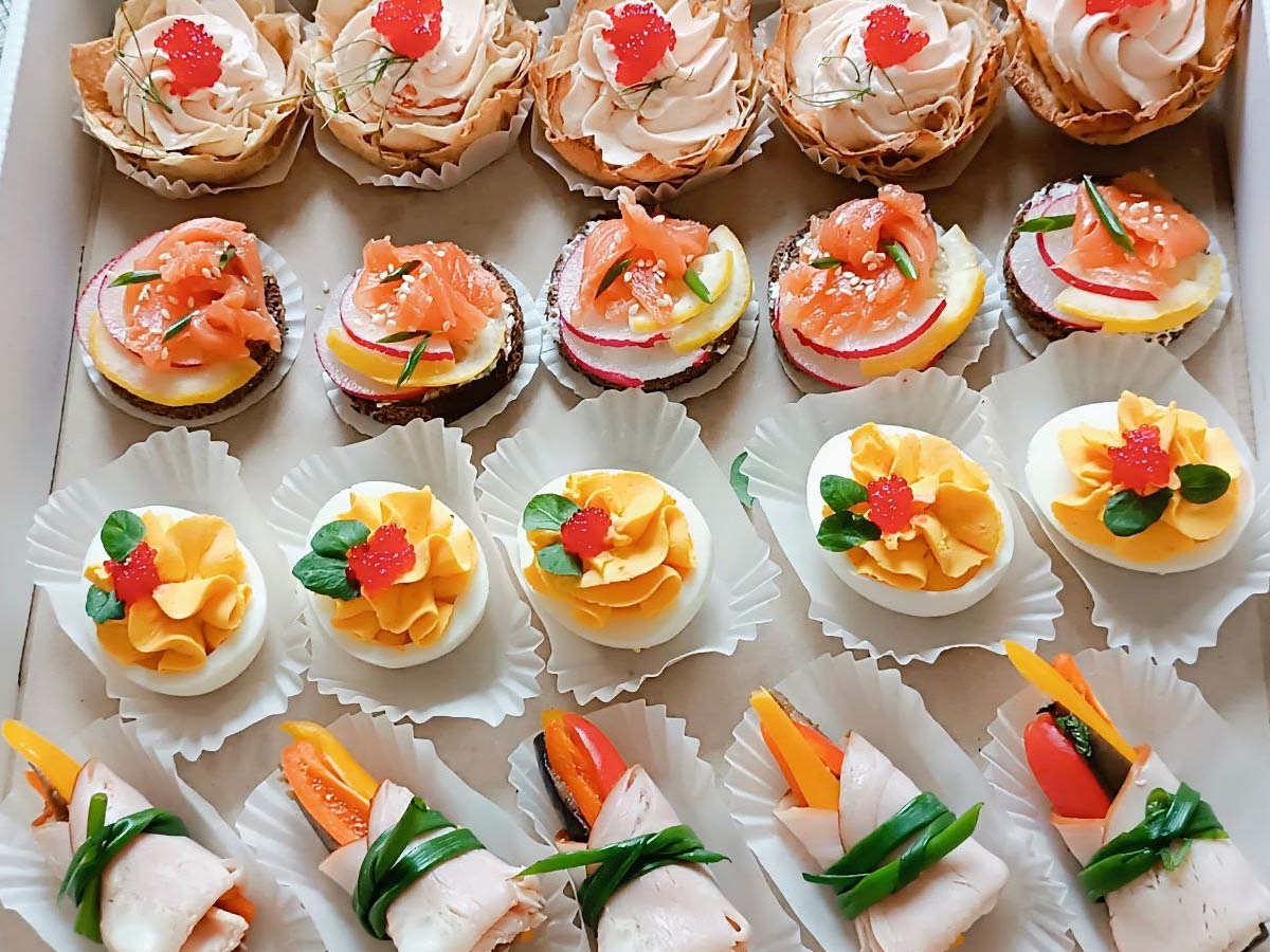 Для больших вечеринок Александра предлагает порционные блюда, которые удобно есть, а индивидуальная упаковка салатов позволяет гостям забрать оставшееся с собой. А для более смелых и молодых клиентов, эксклюзивные закуски в виде ролл или селедка под шубой, оформленная как изысканный рулет с праздничным декором.