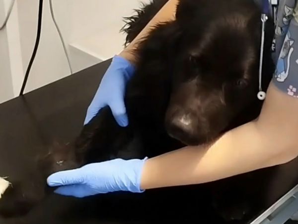 О подробностях 3 марта рассказала директор реабилитационного центра помощи бездомным животным «Святобор» Ольга Мосиюк. Молодой, ласковый и контактный кобель живёт в посёлке Аютинский. Ничего не подозревая, животное спало на своём привычном месте. В какой-то момент пёс заскулил от адской боли. Оказалось, по нему проехала машина.