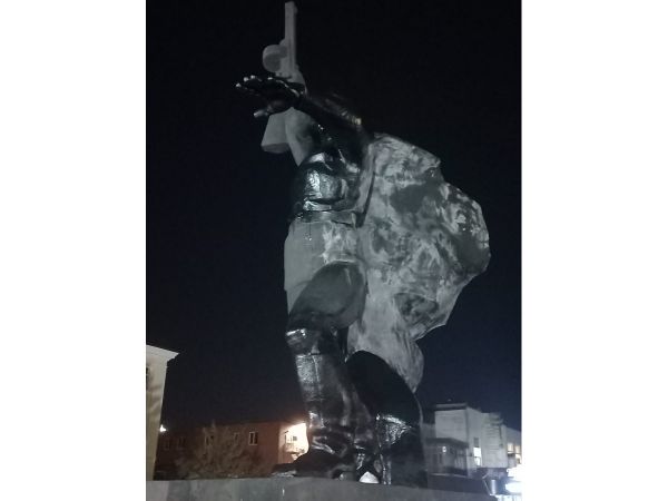 В городе Шахты обновили памятник Солдату на площади 40-летия Победы. Монумент покрасили черной краской. Перед этим памятник прошёл подготовку - его поверхность зачистили от белого налёта.