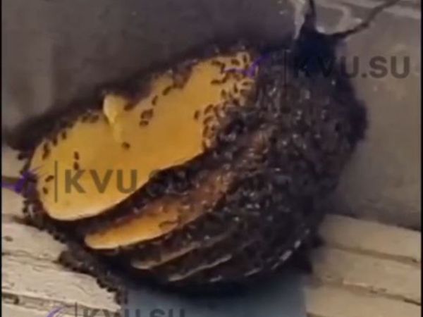 Об этом в социальных сетях 12 сентября рассказал местный житель, он же опубликовал видео. Пчелиный дом расположился прямо над входом в здание на высоте второго этажа.